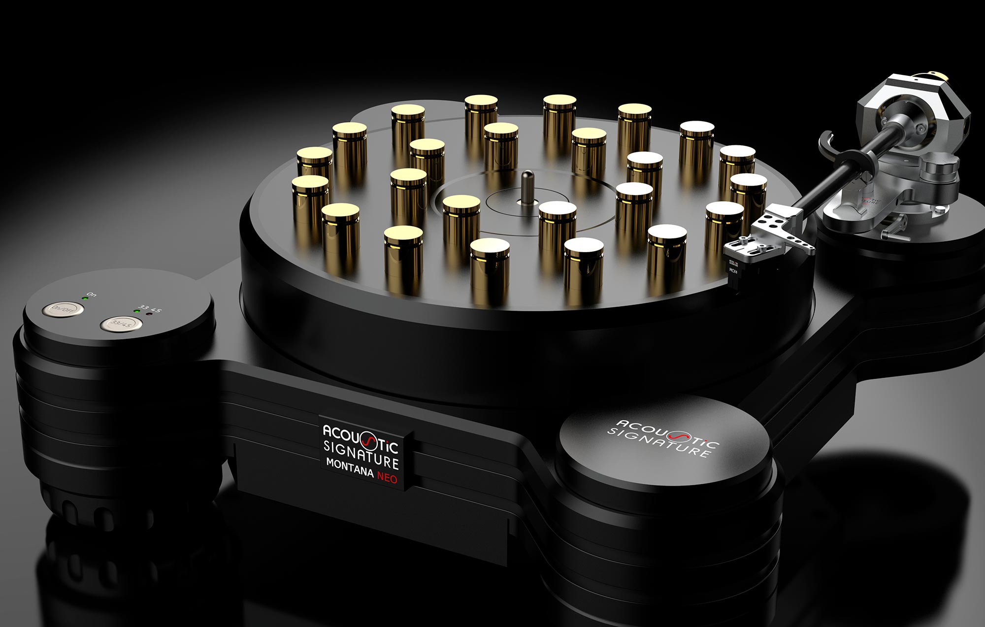 Il Constraint Layer Damping (CLD) è un metodo di ingegneria meccanica per l'assorbimento o la minimizzazione delle vibrazioni. Nei componenti audio la tecnologia CLD viene solitamente implementata utilizzando strutture a sandwich che "incorporano" uno strato di materiale smorzante tra materiali che di per sé non hanno proprietà di smorzamento sufficienti. Una testina seguirà un disco inalterato solo se trova una superficie tranquilla senza interferenze di risonanza. Di conseguenza, è necessario sviluppare basi dei giradischi e piatti privi di vibrazioni – questo obiettivo deve essere perseguito in aggiunta alle misure di riduzione della risonanza per i motori, la trasmissione e la costruzione dei cuscinetti precedentemente descritti ed affrontati. Per raggiungere questo obiettivo, Acoustic Signature ha migliorato l’approccio tipico della tecnologia CLD applicato più di 20 anni fa. Oltre alla classica costruzione a sandwich, Acoustic Signature ha presentato una novità assoluta al mondo high-end: il Silencer platter Acoustic Signature, che ha subito stabilito nuovi standard nell'assorbimento delle vibrazioni. L’approccio che Acoustic Signature ha seguito è quella del CLD a doppio binario, utilizzato principalmente nei giradischi di massa elevata, è ancora insuperato nella sua efficacia. Nel corso della pianificazione e dello sviluppo della linea di prodotti NEO, Acoustic Signature ha lavorato intensamente per migliorare il concetto CLD. In primo luogo, i test effettuati internamente hanno portato a una combinazione ottimizzata dei materiali utilizzati, composta da due strati di una lega speciale di alluminio e uno strato intermedio di ottone. In secondo luogo, si è provveduto anche ad una nuova ottimizzazione della disposizione degli inserti e a un adeguamento delle loro dimensioni, peso e posizione dei nel silent platter.